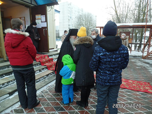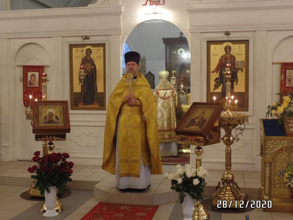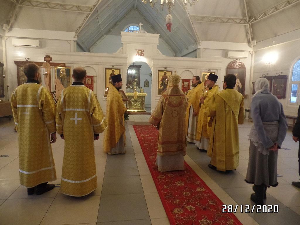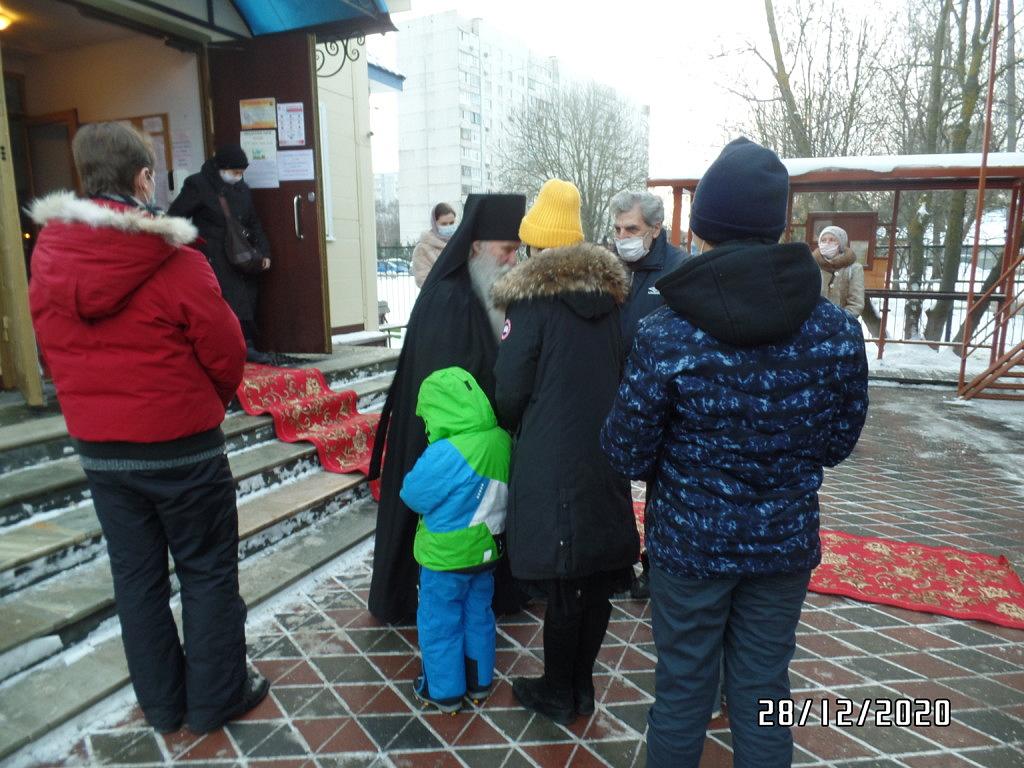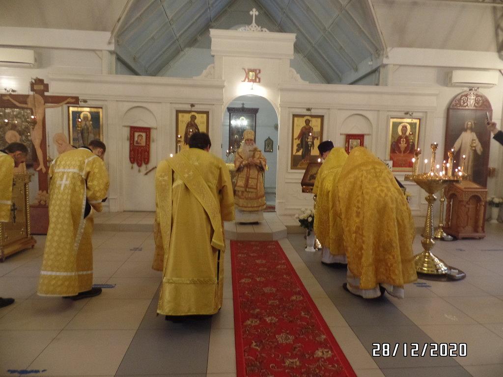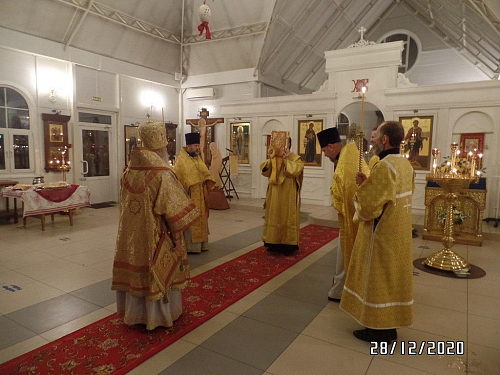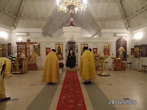28 декабря 2020 г., в понедельник Седмицы 30-й по Пятидесятнице, в день памяти Священномученика Илариона, архиепоскопа Верейского (1929), Собора Крымских святых, Собор Кольских святых, Преосвященный Феофилакт, епископ Дмитровский, викарий Святейшего Патриарха Московского и всея Руси, управляющий Юго-Западным викариатством, наместник Андреевского ставропигиального мужского монастыря города Москвы совершил Божественную Литургию в храме Священномученика Серафима, митрополита Петроградского г. Москвы.