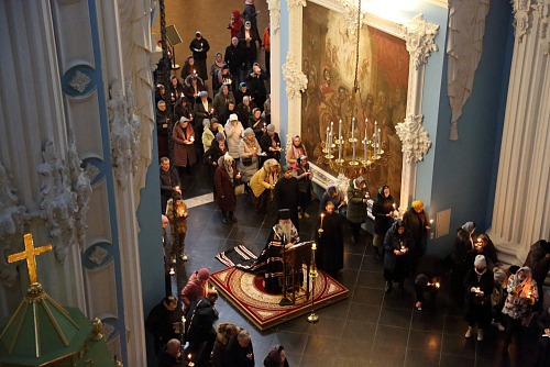 Вечером 18 марта 2021 года, в четверг первой седмицы Великого поста, по благословению Святейшего Патриарха Московского и всея Руси Кирилла, Преосвященный епископ Дмитровский Феофилакт совершил Великое повечерие с чтением Великого канона Преподобного Андрея Критского в Воскресенском Ново-Иерусалимском ставропигиальном мужском монастыре.