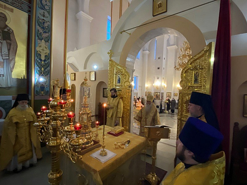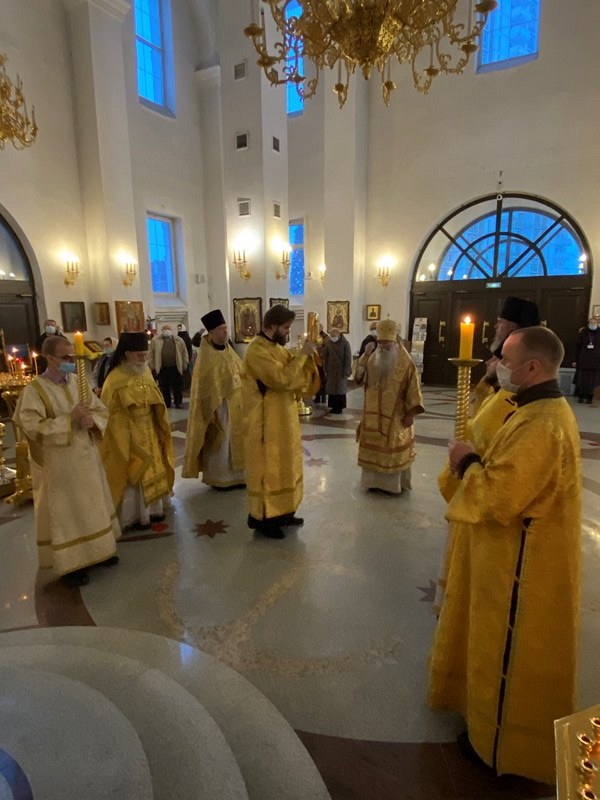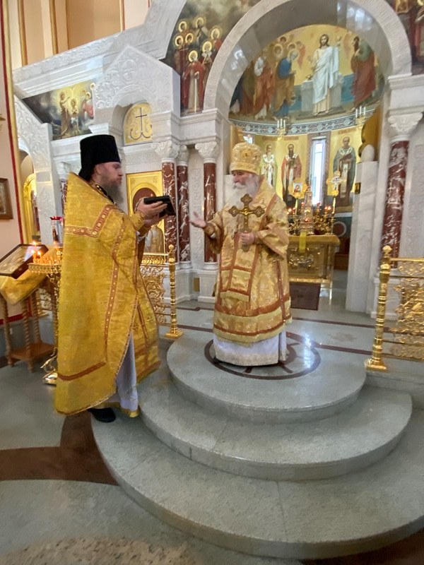 После сугубой ектении епископ Феофилакт прочитал молитву, во время распространения вредоносного поветрия чтомую.