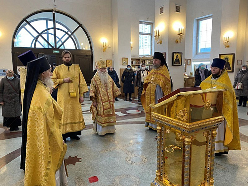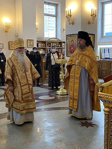 После богослужения к Преосвященному Владыке Феофилакту со словом благодарности и признательности обратился игумен Дамиан, который просил Владыку передать самую теплую благодарность и сыновнюю признательность Святейшему Патриарху Московскому и всея Руси Кириллу, который благословил начало церковной и литургической жизни в храме, который является не только храмом града Москвы, но и имеет статус Подворья Святейшего Патриарха.