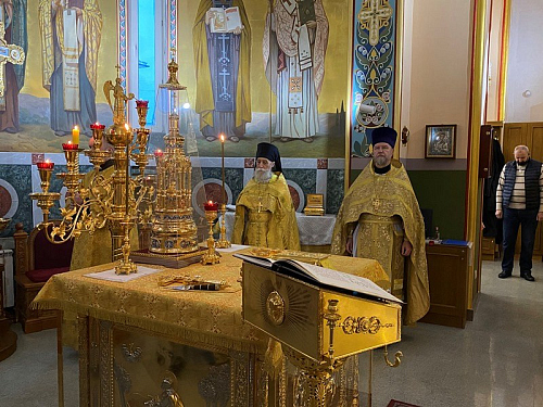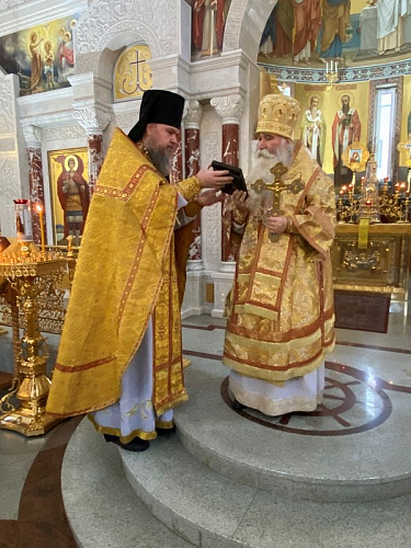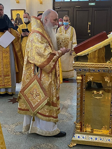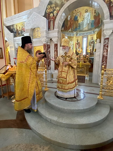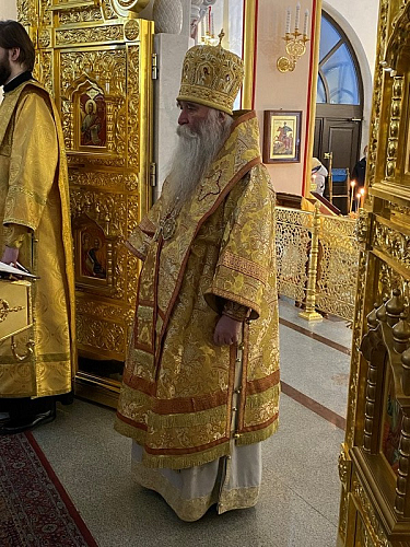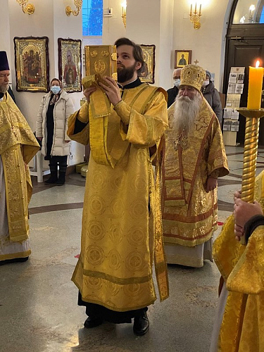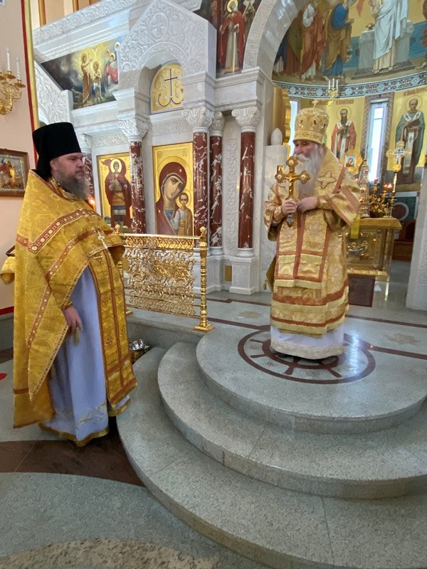 Божественную Литургию возглавил Преосвященный Феофилакт, епископ Дмитровский, викарий Святейшего Патриарха Московского и всея Руси, управляющий Юго-Западным викариатством, наместник Андреевского ставропигиального мужского монастыря г. Москвы.