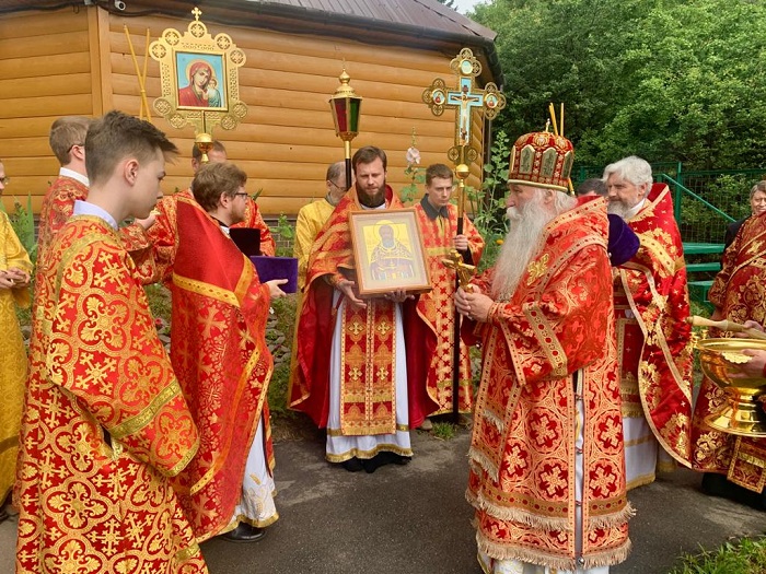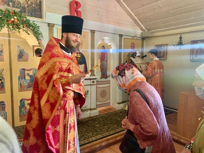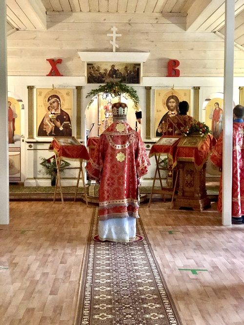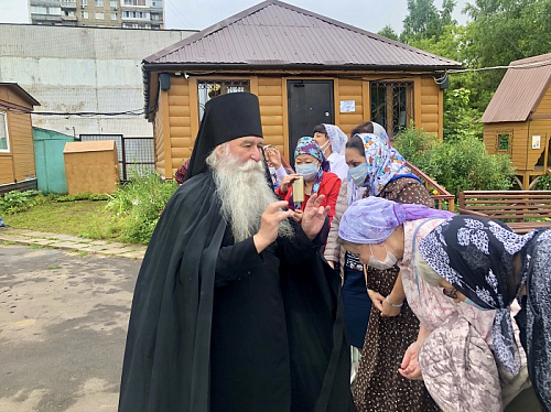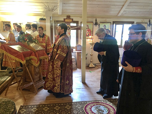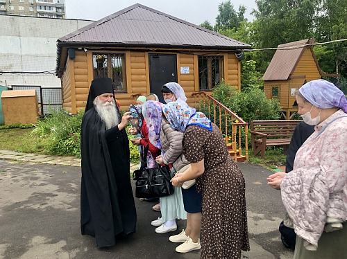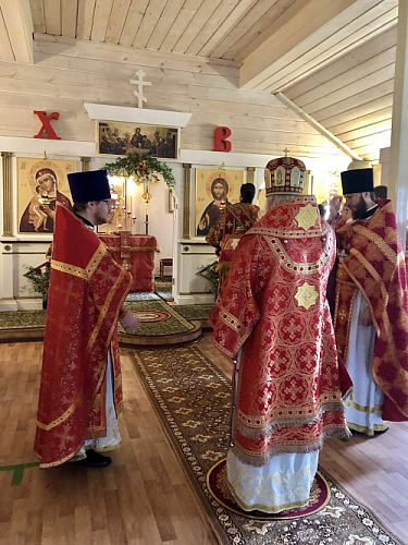 По окончании Богослужения иерей Евгений Марков обратился к епископу Феофилакту с приветственным словом, сердечно поблагодарил его за внимание и поддержку всех направлений деятельности прихода, преподнеся в дар икону Божией Матери "Всецарица". В ответном слове епископ Феофилакт поблагодарил настоятеля за молитвы и труды во славу Божию, за строительство и благоукрашение временного храма, выразив надежду на скорейшее строительство нового большого храма.