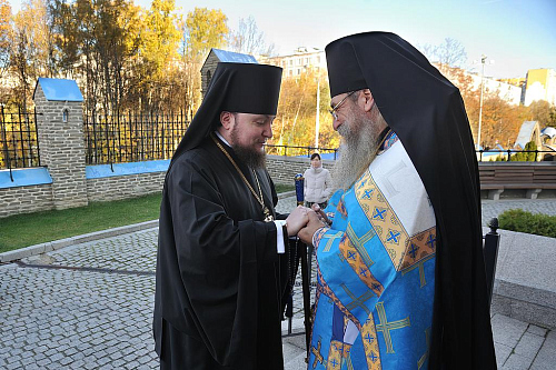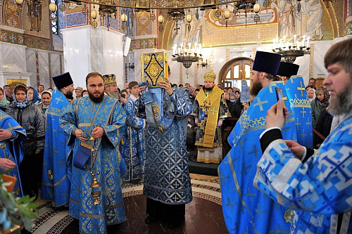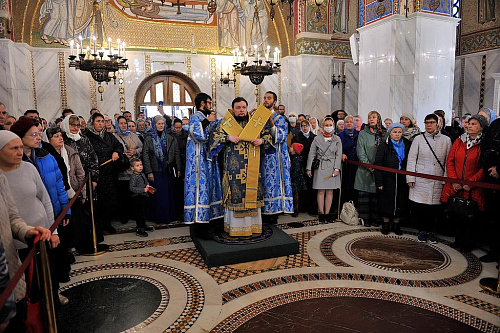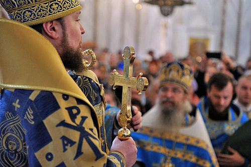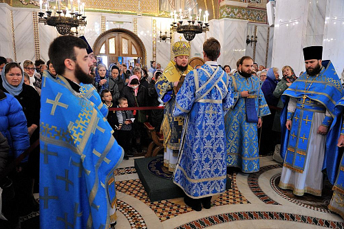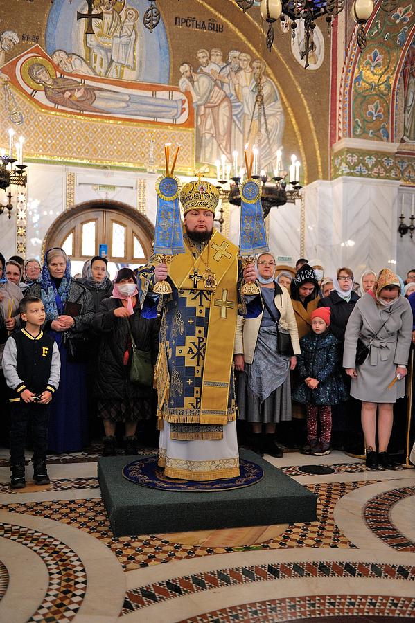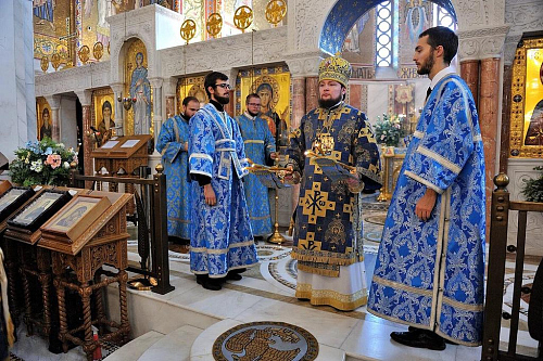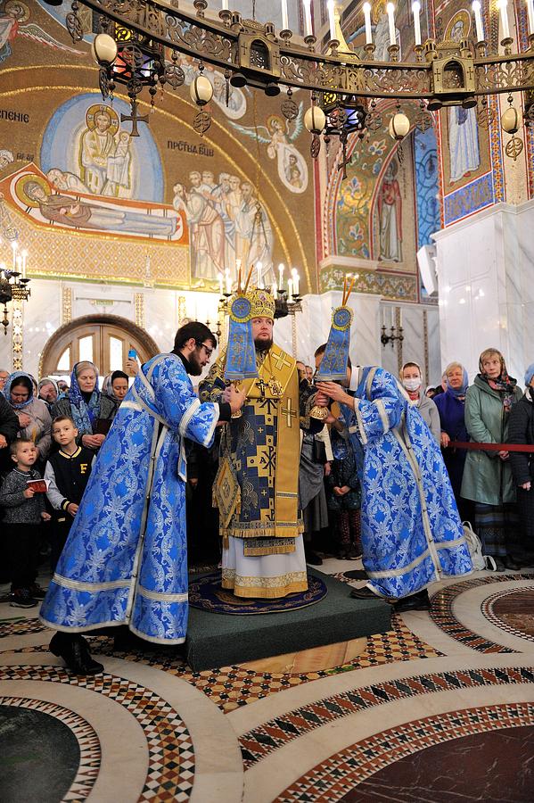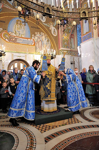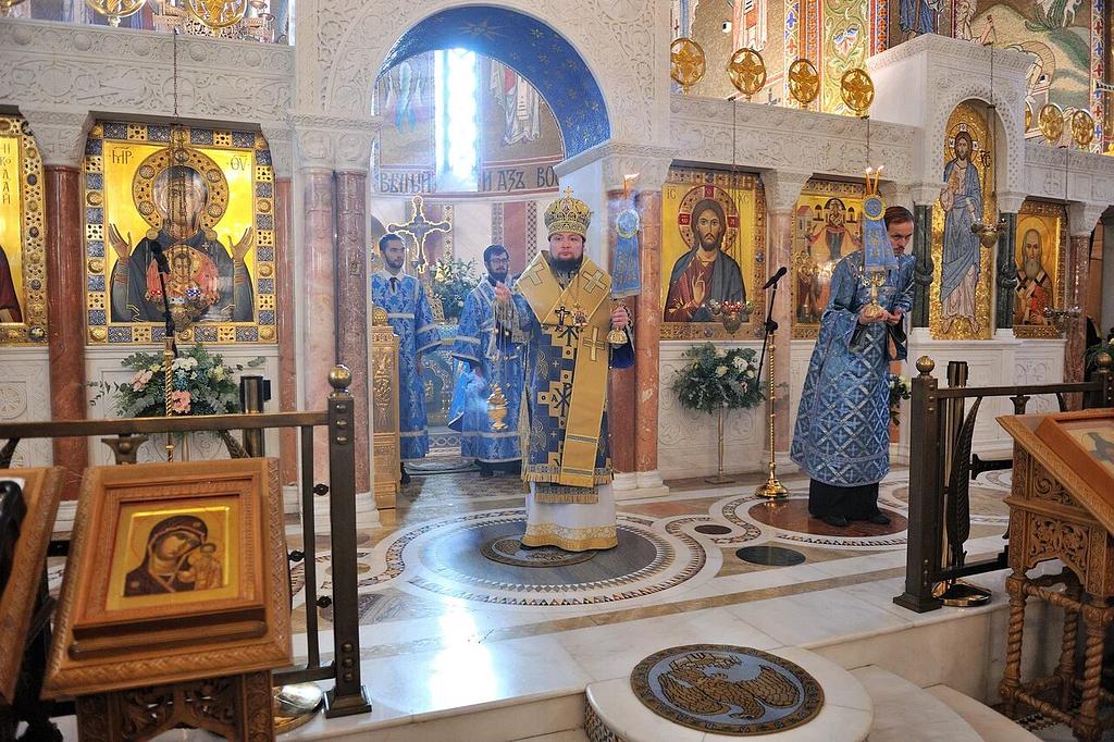 Его Преосвященству сослужили настоятель храма архимандрит Мелхиседек (Артюхин) и духовенство храма.