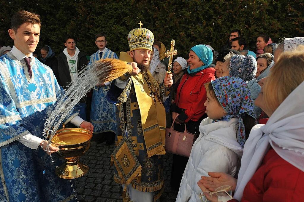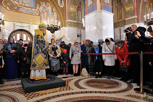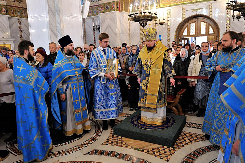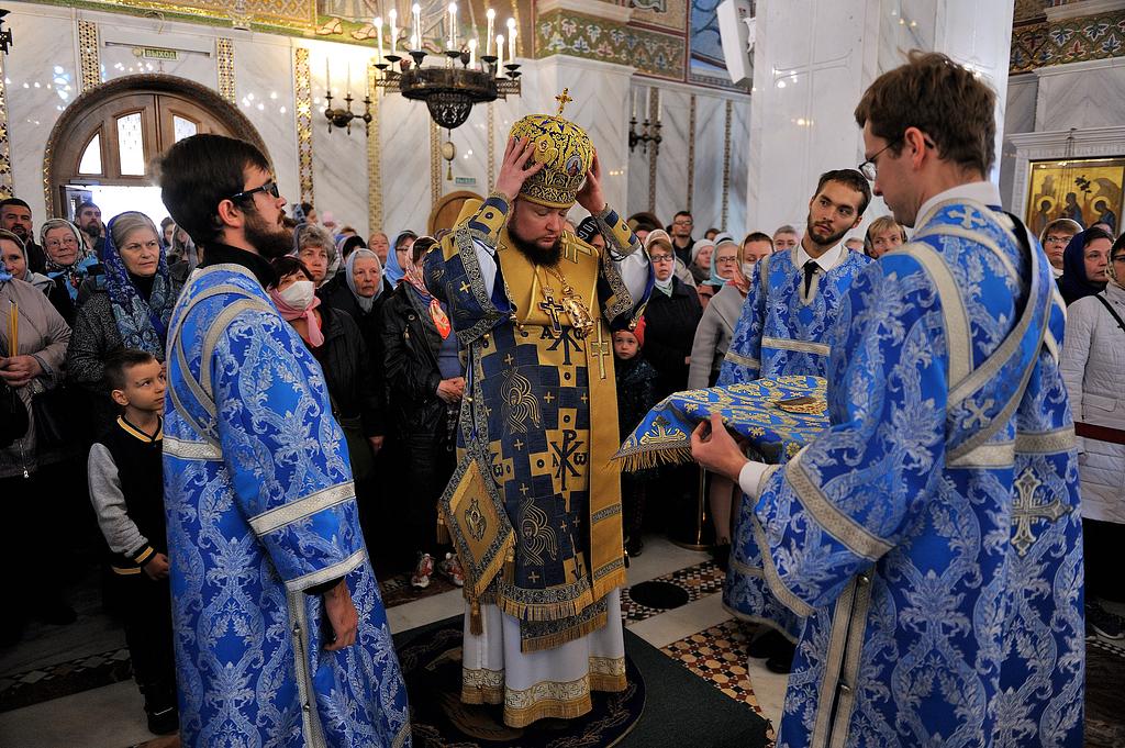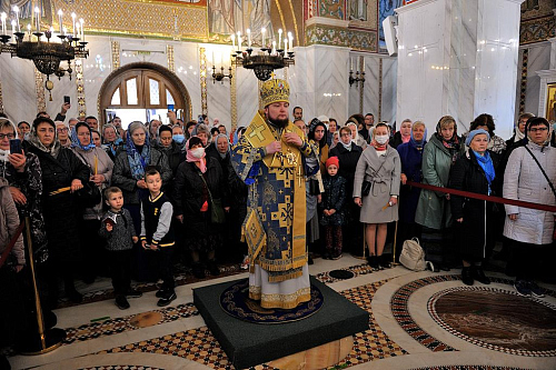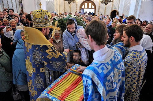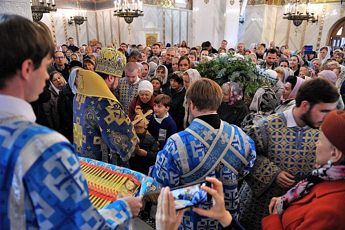 В завершение Его Преосвященство преподал верующим крест и архипастырское благословение. Юные прихожане в честь праздника получили из рук владыки Серафима гостинцы — шоколад.