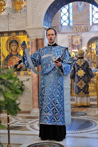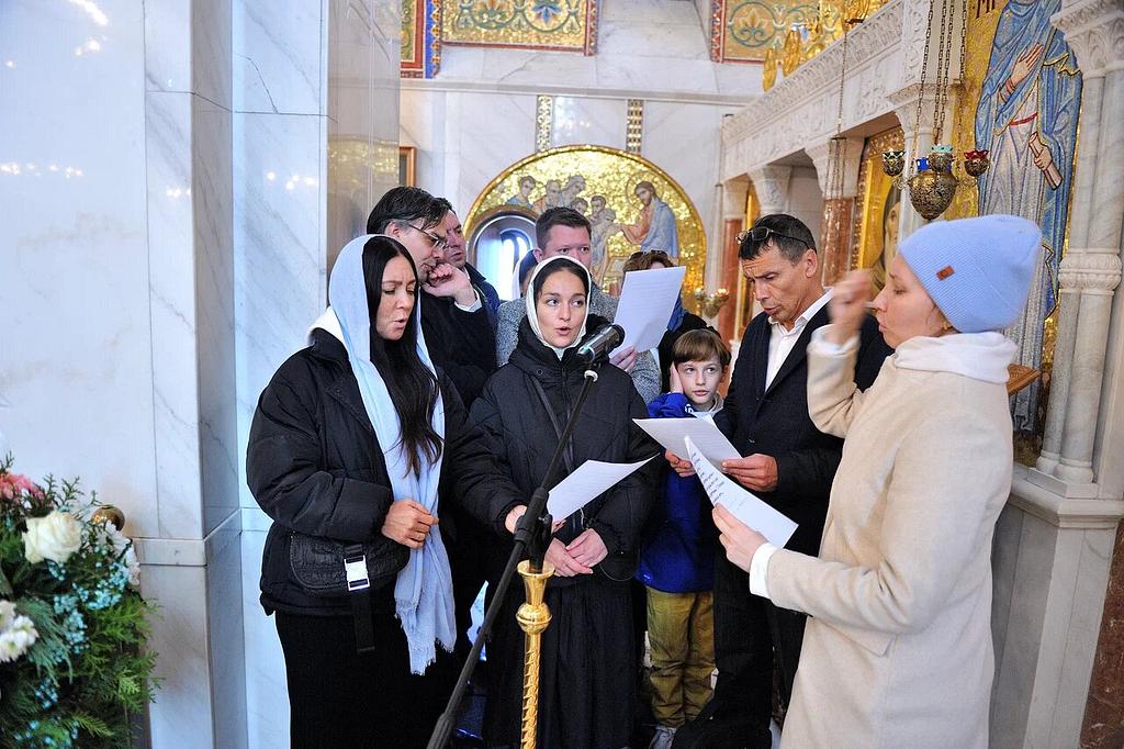 Богослужебные песнопения исполнил праздничный хор храма под управлением Ольги Смирновой, а также молодежный хор Юго-Западного викариатства под управлением Лизы Кошкиной.