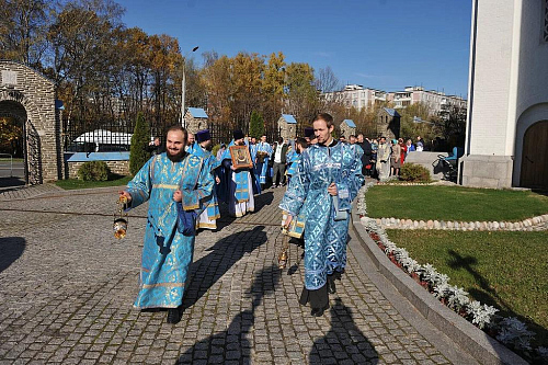 По завершении богослужения Преосвященнейший Серафим возглавил крестный ход по случаю престольного праздника.