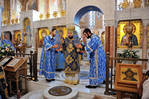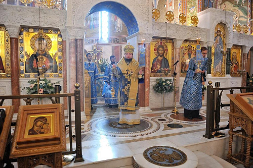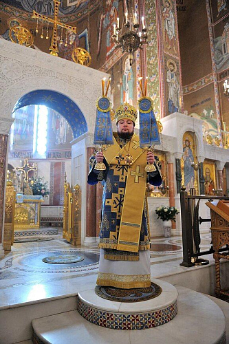 По возвращении в храм епископ Серафим поздравил прихожан с престольным праздником и передал духовенству и верующим приветствия и поздравления с престольным праздником от Святейшего Патриарха Кирилла. В ответном слове настоятель храма поблагодарил владыку Серафима за архипастырский визит.