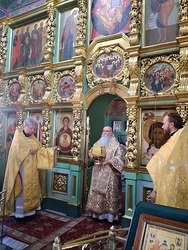 Его Преосвященству сослужили клирики храма святых благоверных князей и страстотерпцев Бориса и Глеба протоиерей Владимир Кучумов и иерей Николай Кривотулов.