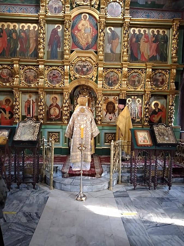 На сугубой ектении были вознесены молитвенные прошения об избавлении от коронавирусной инфекции.
