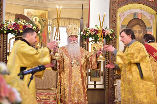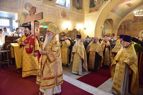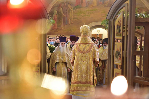 Епископ Феофилакт поздравил отца настоятеля, отца благочинного, братию и прихожан храма с престольным праздником и передал всем собравшимся благословение Его Святейшества, Святейшего Патриарха Московского и всея Руси Кирилла. В приветственном слове Владыка пожелал всем собравшимся чаще обращать свой взор на святых и учиться у них жить на этой земле, будучи Христовыми чадами, послушниками и в какой-то мере апостолами, устремляя всю свою жизнь ко Христу и жизни вечно, - трудясь и не смущаясь, если приходится делать больше, чем кажется посильным, и благодарить Бога за то, что Он даёт нам дыхание, чтобы трудиться во славу Его.
