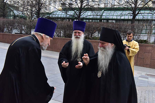Его Преосвященству сослужили: протоиерей Андрей Речицкий, благочинный Иверского церковного округа г. Москвы; протоиерей Александр Борисов, настоятель храма святых бессребреников Космы и Дамиана в Шубине; протоиерей Александр Кузин, протоиерей Иоанн Власов, иерей Пётр Коломейцев, иеромонах Иоанн (Гуайта), диакон Александр Константинов, диакон Александр Константинов - клирики храма святых бессребреников Космы и Дамиана в Шубине; протодиакон Богдан Мошура, клирик Троице-Сергиевой Лавры.