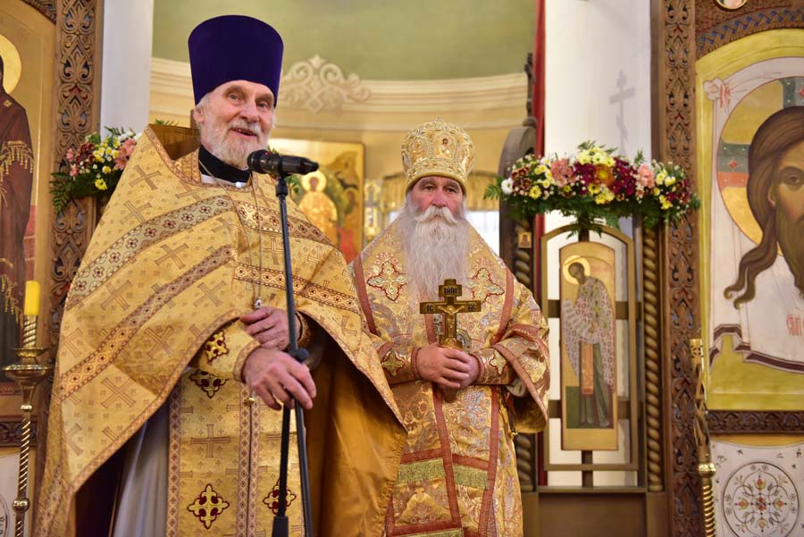 Настоятель храма протоиерей Александр Борисов поприветствовал епископа Феофилакта и передал в дар от прихода икону святителя Николая Чудотворца, архиепископа Мир Ликийского. Настоятель храма напомнил, что первая Божественная Литургия в храме, после 62-летнего перерыва, была совершена 30 лет назад 19 декабря 1991 года – в день памяти святителя Николая Чудотворца.