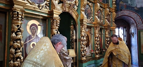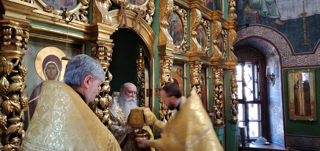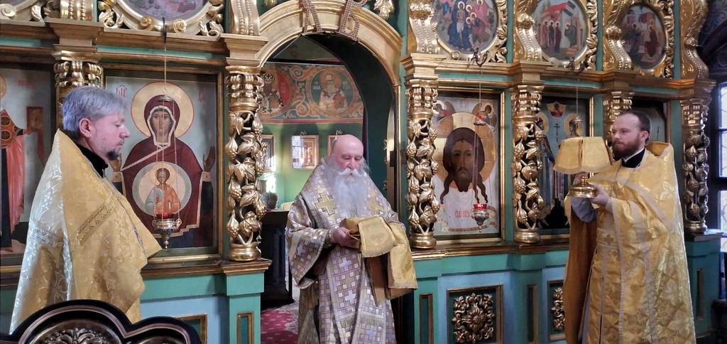 Его Преосвященству сослужили клирики храма святых благоверных князей и страстотерпцев Бориса и Глеба протоиерей Владимир Кучумов и иерей Николай Кривотулов.