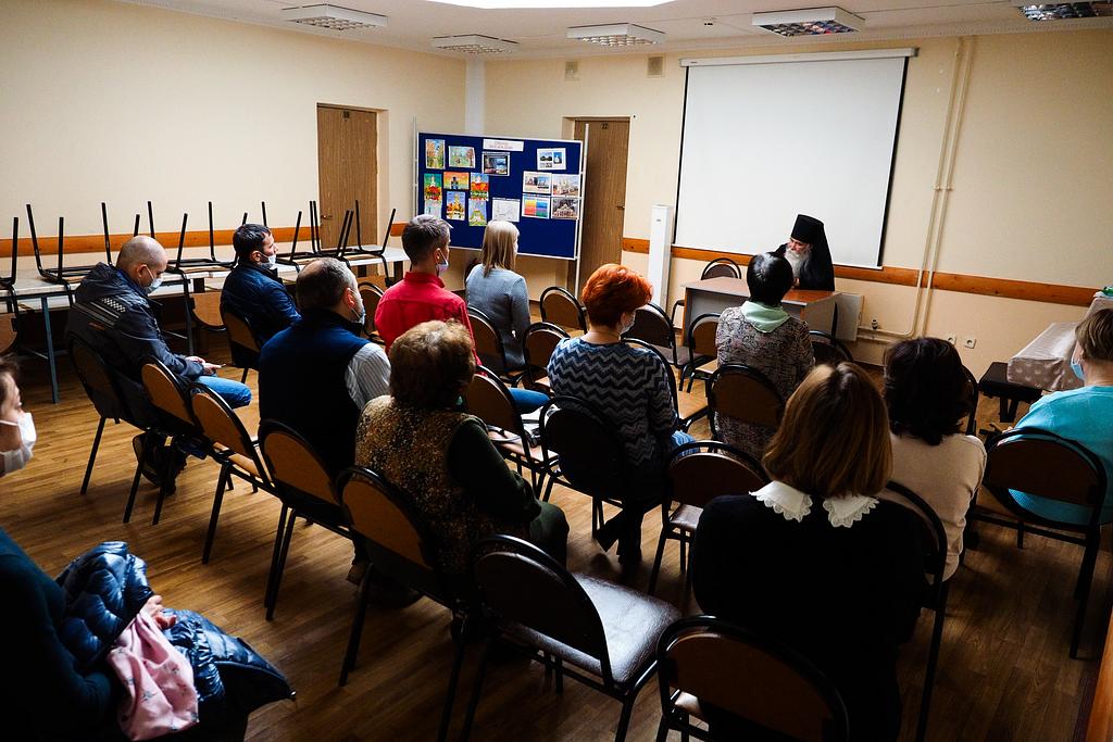 Затем владыка посетил приходскую Воскресную школу, где провёл беседу с преподавателями и родительским активом. Главной темой беседы была необходимость сочетать обучение с участием в литургической жизни Церкви.