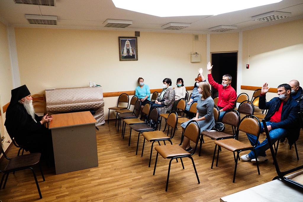 Затем владыка посетил приходскую Воскресную школу, где провёл беседу с преподавателями и родительским активом. Главной темой беседы была необходимость сочетать обучение в школе с участием в литургической жизни Церкви.