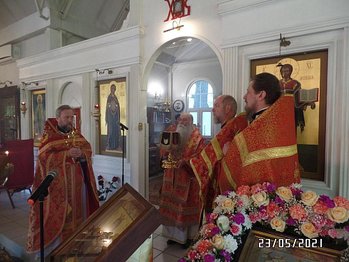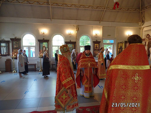 По окончании Божественной Литургии Преосвященный епископ Феофилакт преподал прихожанам и воспитанникам Воскресной школы архипастырское благословение, а также разделил братскую трапезу с клириками и сотрудниками храма.