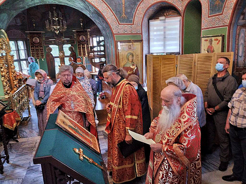 По окончании Божественной Литургии был совершен Крестный ход. Настоятель храма, Преосвященный Феофилакт, обратился с проникновенным архипастырским словом к прихожанам и паломникам и преподал им благословение.
