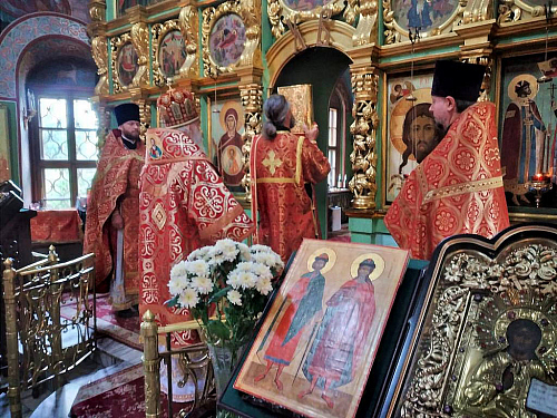 06 августа 2021 года, в день памяти благоверных князей Российских и страстотерпцев Бориса и Глеба, во Святом Крещении Романа и Давида, Преосвященный Феофилакт епископ Мытищинский, викарий Святейшего Патриарха Московского и всея Руси, управляющий Юго-Западным викариатством, наместник Андреевского ставропигиального мужского монастыря г. Москвы совершил Божественную Литургию в храме святых мучеников и страстотерпцев Бориса и Глеба в Зюзине.
