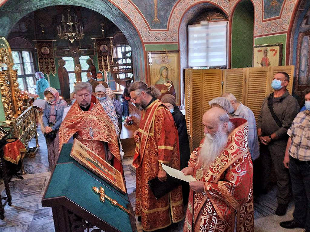 Его Преосвященству сослужили клирики храма святых благоверных князей и страстотерпцев Бориса и Глеба протоиерей Владимир Кучумов и иерей Николай Кривотулов.
