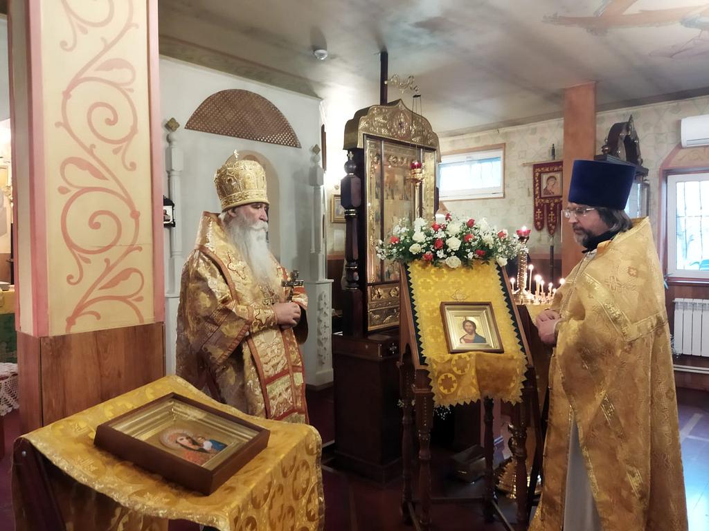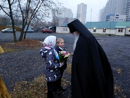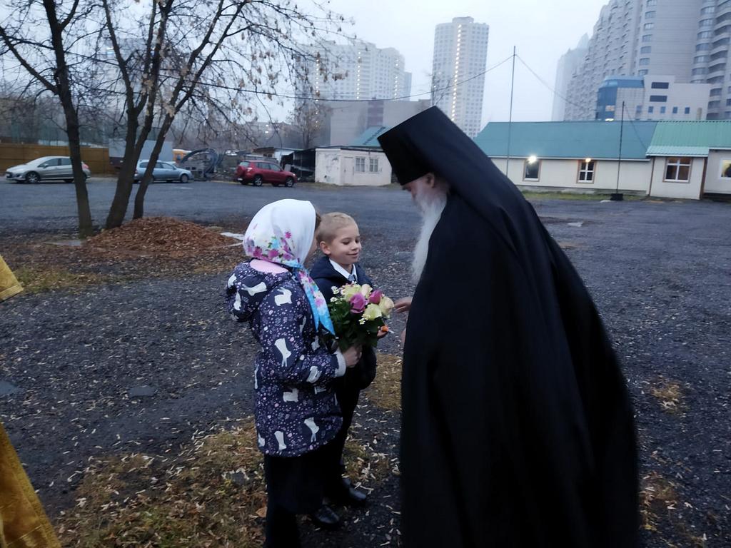 Епископа по традиции встретили торжественным колокольным звоном. Воспитанники Воскресной школы храма вручили владыке Феофилакту букет цветов.