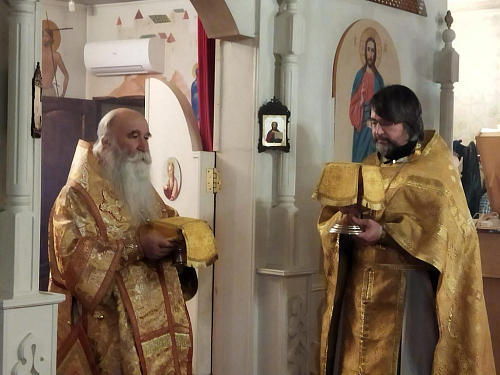 Его Преосвященству сослужили иерей Игорь Шаров, настоятель храма Святых Праведных Симеона Богоприимца и Анны Пророчицы в Черемушках и протодиакон Игорь Симонов, клирик храма святителя Николая Мирликийского в Бирюлеве.