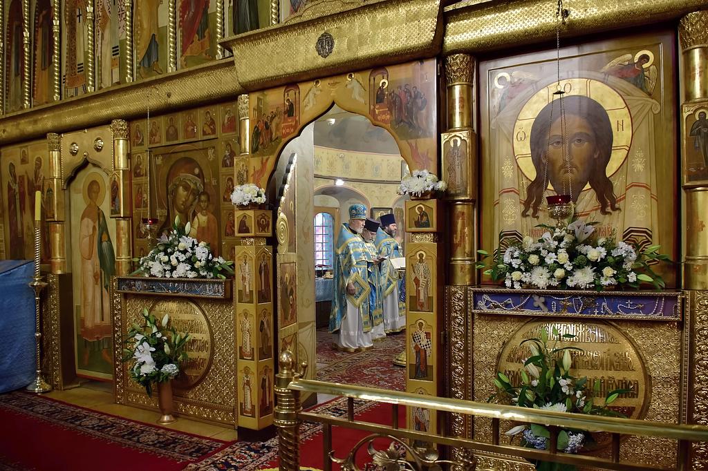 Его Преосвященству сослужили: протопресвитер Владимир Диваков, секретарь Святейшего Патриарха по г. Москве; протоиерей Андрей Речицкий, благочинный Иверского округа г. Москвы;протоиерей Николай Иноземцев, настоятель Собора Казанской иконы Божией Матери на Красной площади; протоиерей Константин Польсков, клирик храма святителя Николая в Кузнецах и духовенство Казанского собора.