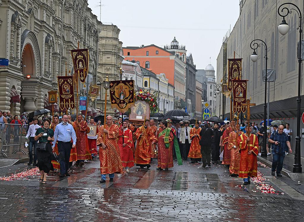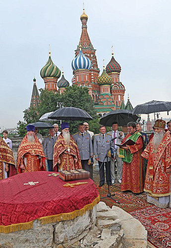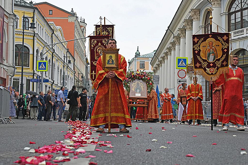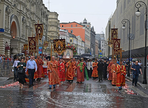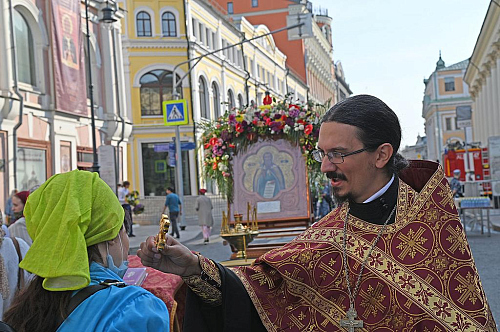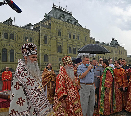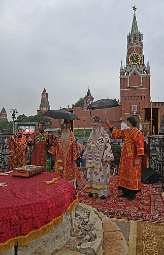По окончании Божественной Литургии состоялся торжественный молебен на Лобном месте на Красной площади, который возглавил епископ Мытищинский Феофилакт. После молебна Преосвященнейший Владыка передал поздравление с праздником и благословение Его Святейшества, Святейшего Патриарха Московского и всея Руси, всем участникам праздничных мероприятий.