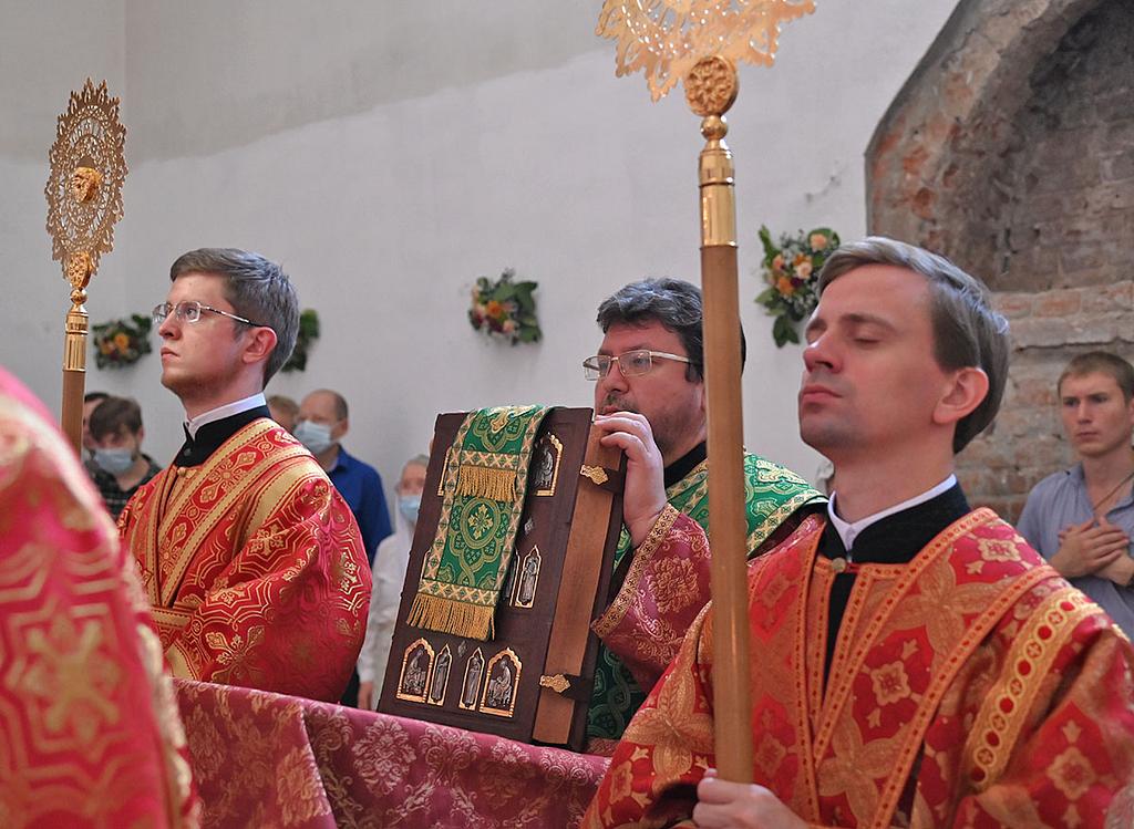 02 августа 2021 года, в день памяти святого пророка Божия Илии, Преосвященнейший Феофилакт, епископ Мытищинский, Викарий Святейшего Патриарха Московского и всея Руси, управляющий Юго-Западным викариатством г. Москвы, наместник Андреевского стравропигиального мужского монастыря, совершил Божественную Литургию в храме пророка Божия Илии на Новгородском подворье г. Москвы в сослужении Преосвященного Иоанна, епископа Славонско-Пакрацкого.