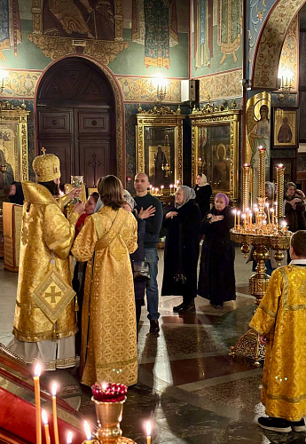 По окончании Литургии епископ Алексий сердечно поблагодарил прихожан за соборные молитвы и поздравил с Причастием Святых Христовых Таин.