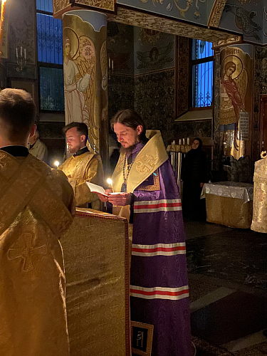 Богослужебные песнопения исполнил мужской хор храма преподобной Евфросинии Московской (регент Даниил Кузин).