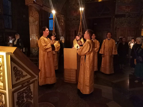 На сугубой ектении были возглашены особые прошения об Отечестве и защитниках его, об утверждении всех в вере, единомыслии, здравии и силе духа. Преосвященнейший Владыка вознёс молитву о Святой Руси.