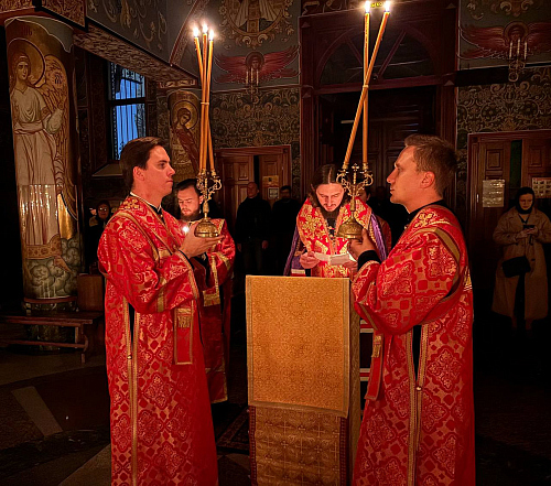 На сугубой ектении были возглашены особые прошения об Отечестве и защитниках его, об утверждении всех в вере, единомыслии, здравии и силе духа. Преосвященнейший Владыка вознёс молитву о Святой Руси.