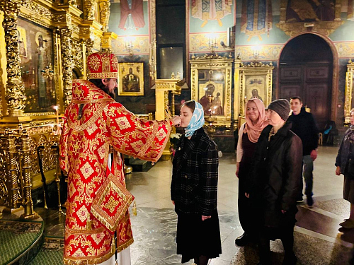 По окончании Литургии епископ Алексий сердечно поблагодарил прихожан за соборные молитвы и поздравил с Причастием Святых Христовых Таин.