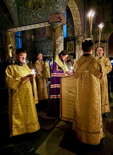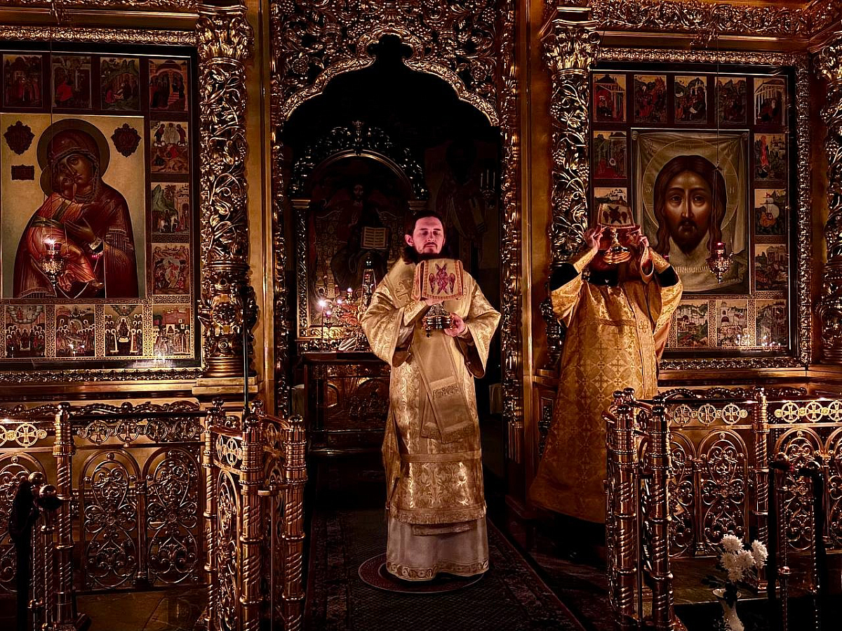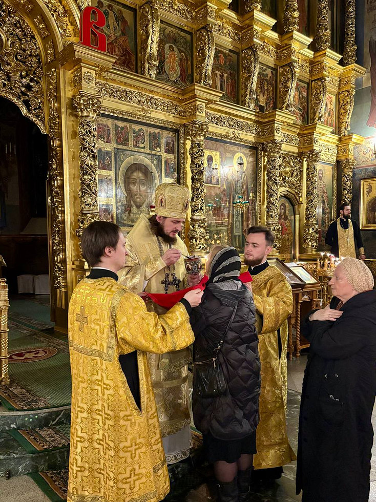 По окончании богослужения Владыка Алексий сердечно поблагодарил прихожан за соборные молитвы и поздравил с Причастием Святых Христовых Таин.