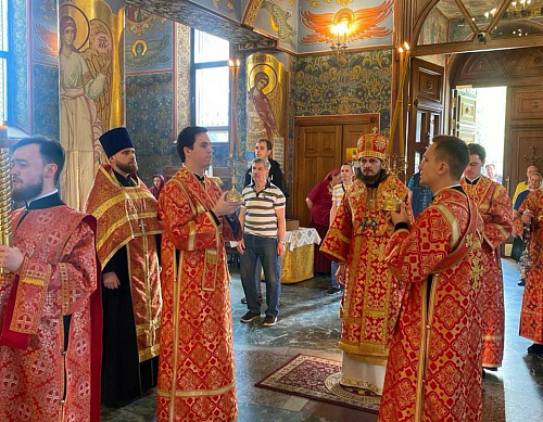 Его Преосвященству сослужил священник Александр Мохов. Диаконский чин возглавил диакон Константин Бабак.