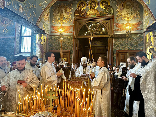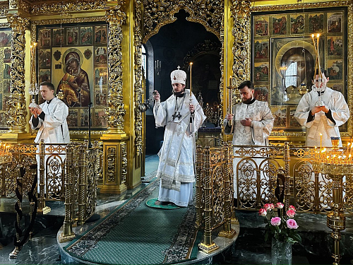 Богослужебные песнопения исполнил народный хор храма преподобной Евфросинии Московской (регент Виталий Чувилов). На сугубой ектении были вознесены особые прошения, Преосвященнейший Владыка прочитал молитву о Святой Руси.