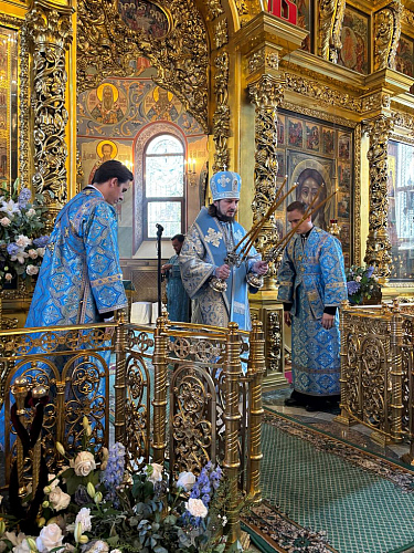 31 августа 2025 года, в Неделю 12-ю по Пятидесятнице, попразднство Успения Пресвятой Богородицы, мучеников Флора и Лавра, епископ Раменский Алексий возглавил совершение поздней Божественной Литургии в храме преподобной Евфросинии, великой княгини Московской, в Котловке. Его Преосвященству сослужили клирики храма священник Александр Мохов и диакон Константин Бабак.