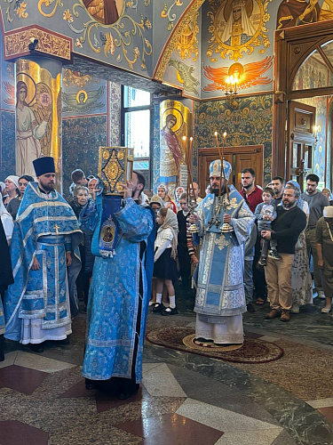 На сугубой ектении были возглашены особые прошения об Отечестве и защитниках его, об утверждении всех в вере, единомыслии, здравии и силе духа. Преосвященнейший Владыка вознёс молитву о Святой Руси.