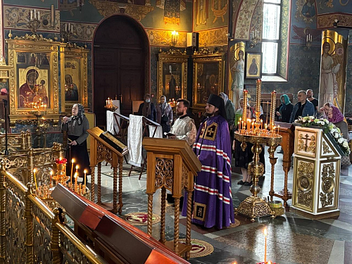 На сугубой ектении были возглашены особые прошения об Отечестве и защитниках его, об утверждении всех в вере, единомыслии, здравии и силе духа. Преосвященнейший Владыка вознёс молитву о Святой Руси.