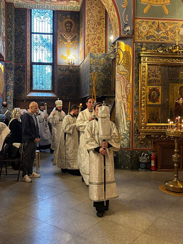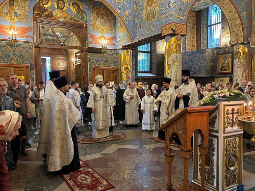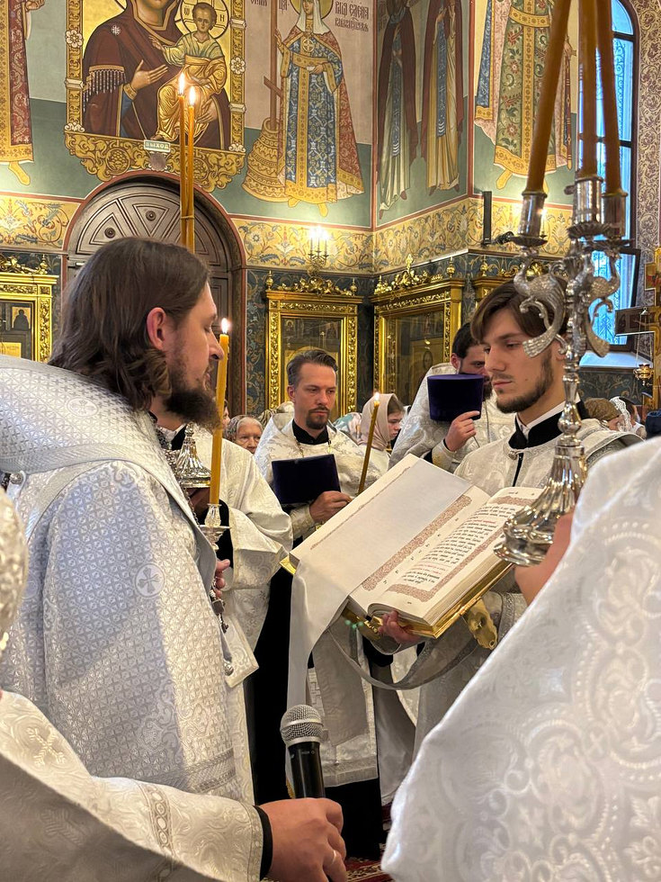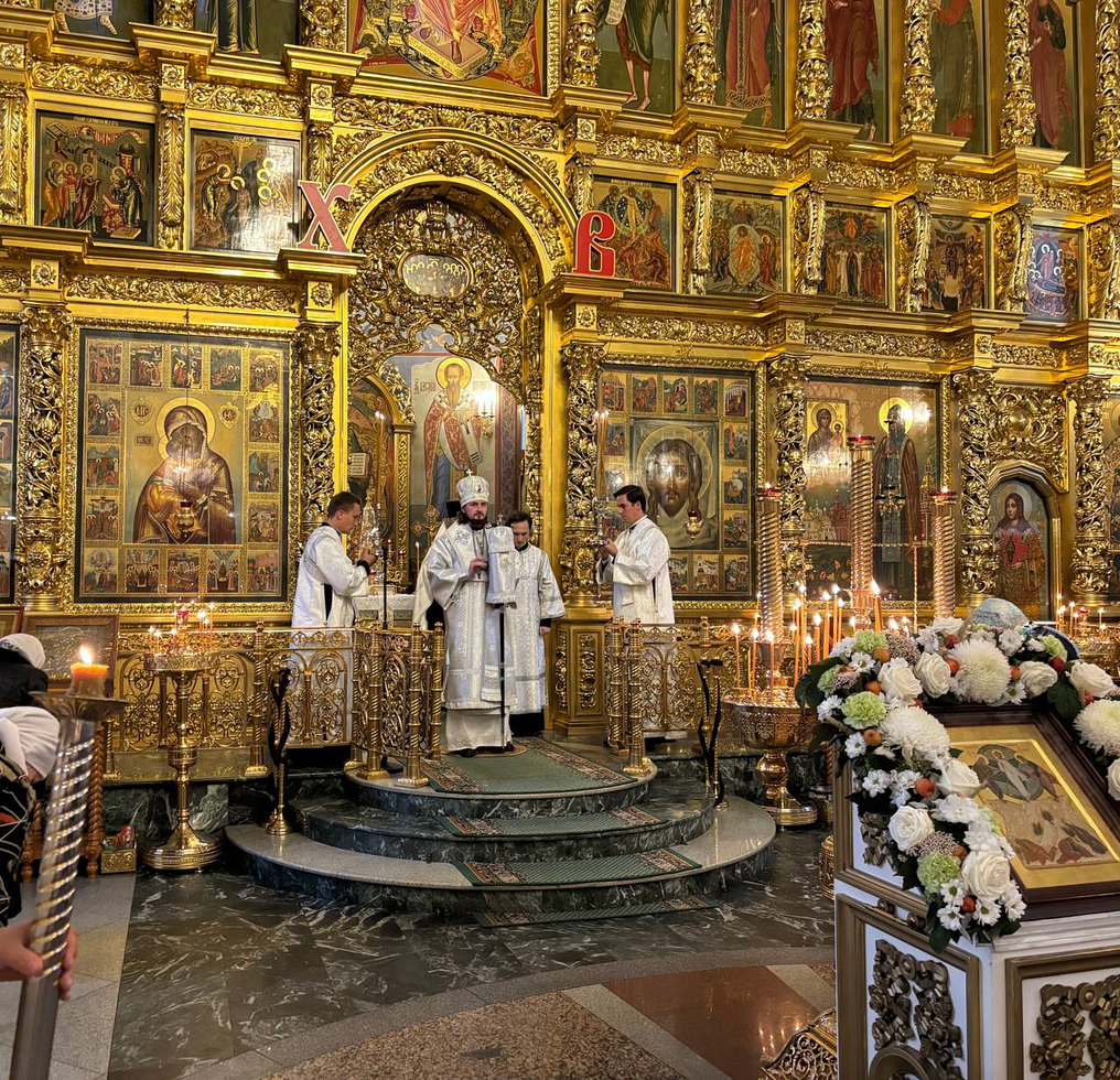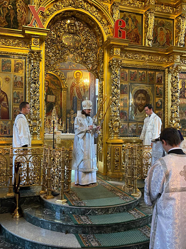 В сам воскресный день, 24 августа, Владыка Алексий возглавил совершение поздней Божественной Литургии в храме преподобной Евфросинии. Его Преосвященству сослужили клирики храма священник Иннокентий Семенов и диакон Константин Бабак.