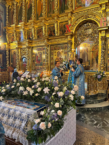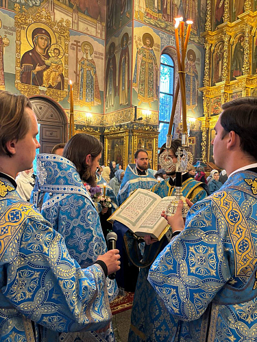 Песнопения праздника исполнил мужской хор храма преподобной Евфросинии Московской (регент Даниил Кузин).