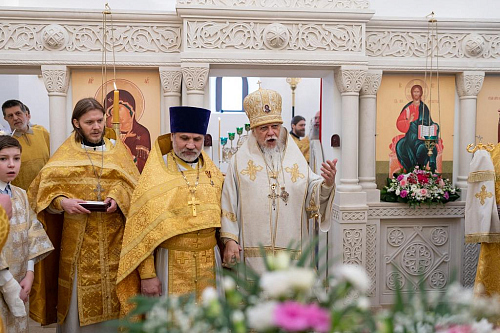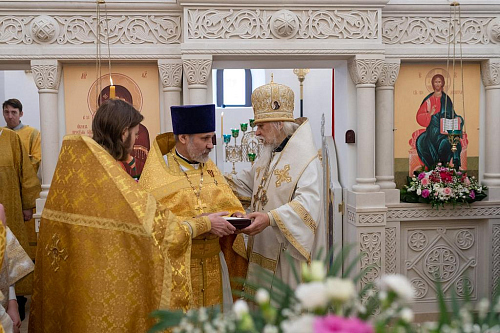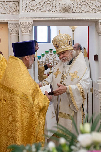 Также владыка Пантелеимон поздравил диакона Андрея Кириченко с рукоположением в сан, а настоятеля и прихожан с престольным праздником и освящением храма.