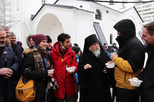 Для прихожан и гостей на территории храма было организовано праздничное угощение. Гостям была предложена каша, приготовленная на полевой кухне, и ароматный чай.
