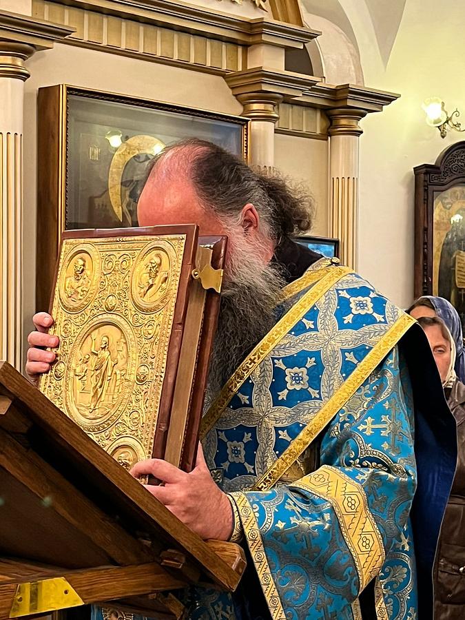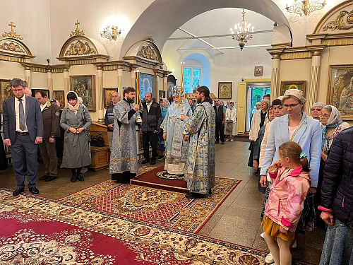 По окончании Богослужения архимандрит Петр (Поляков) от лица духовенства, сотрудников и прихожан храма поблагодарил Владыку Пантелеимона за радость молитвенного общения и преподнес Его Преосвященству букет белых роз.