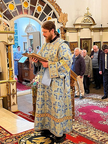 Его Преосвященству сослужили: протоиерей Анатолий Кожа, благочинный Параскево-Пятницкого церковного округа; архимандрит Петр (Поляков), настоятель Казанского храма в Узком; протоиерей Димитрий Толкачев, штатный клирик Казанского храма в Узком; иерей Георгий Пигарь, штатный клирик Казанского храма в Узком; иерей Михаил Голубков, клирик храма Царевича Димитрия при 1-й Градской больнице; диакон Игорь Куликов, диакон Георгий Разумовский.