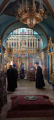 10 июля 2022 года, в неделю 4-ю по Пятидесятгнице, епископ Верейский Пантелеимон, временно управляющий Юго-Западным викариатством г. Москвы, совершил Божественную Литургию в храме иконы Божией Матери "Знамение" в Захарьино.