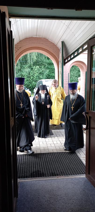 Преосвященному сослужили: благочинный Параскево-Пятницкого церковного округа г. Москвы, настоятель храма великомученицы Параскевы Пятницы в Качалове протоиерей Анатолий Кожа; настоятель храма иконы Божией Матери "Знамение" в Захарьиноиерей Владимир Галкин;клирик храма иконы Божией Матери "Знамение" в Захарьиноиерей Михаил Фаворский; клирик храма святого благоверного царевича Димитрия при 1-й Градской больнице г. Москвы иерей Михаил Голубков.