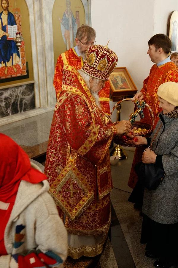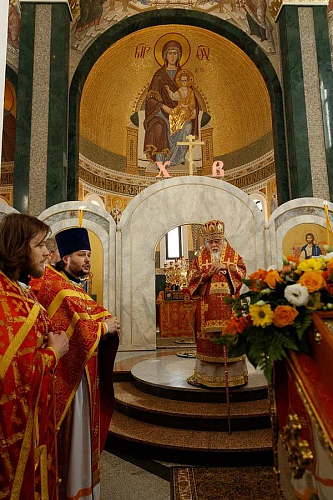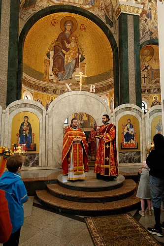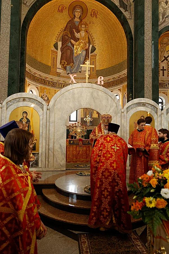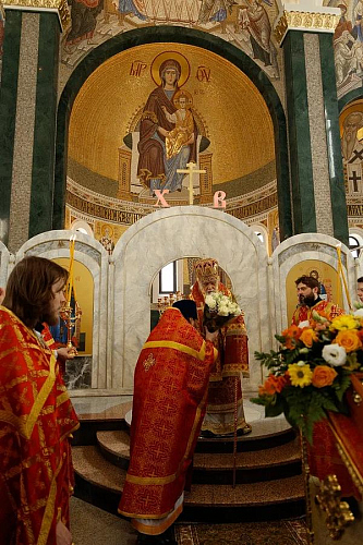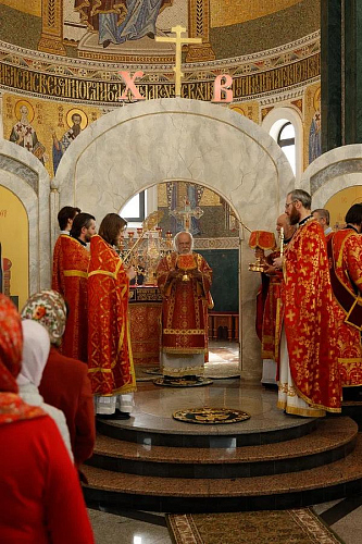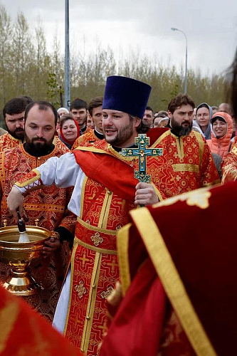 По окончании Божественной Литургии Преосвященный Пантелеимон возглавил крестный ход, а также совершил литию на месте погребения первого настоятеля храма протоиерея Владимира Ковтуненко.