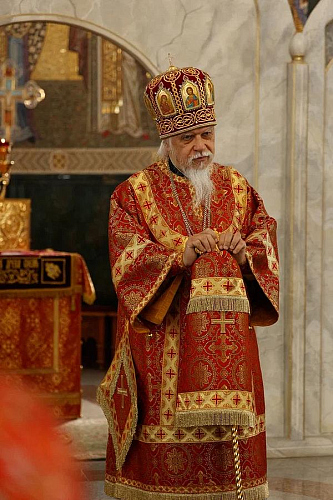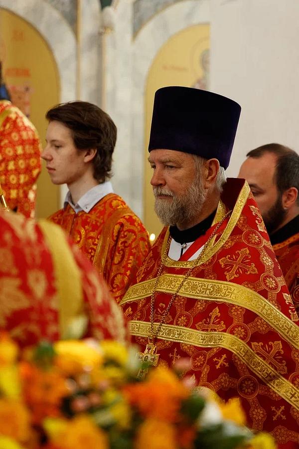 Его Преосвященству сослужили: протоиерей Анатолий Кожа, благочинный Параскево-Пятницкого церковного округа, настоятель храма Великомученицы Параскевы Пятницы в Качалове; иерей Димитрий Самсонов, исполняющий обязанности настоятеля храма святителя Стефана, епископа Великопермского, в Южном Бутове; иерей Николай Лузанов, настоятель храма Покрова Пресвятой Богородицы города Долгопрудного Московской области; иерей Михаил Голубков, клирик храма святого благоверного царевича Димитрия при Первой градской больнице г. Москвы; диакон Иоанн Клинцов, клирик Кафедрального соборного храма Христа Спасителя; диакон Димитрий Бакланов, клирик храма Успения Пресвятой Богородицы в Вешняках г. Москвы.