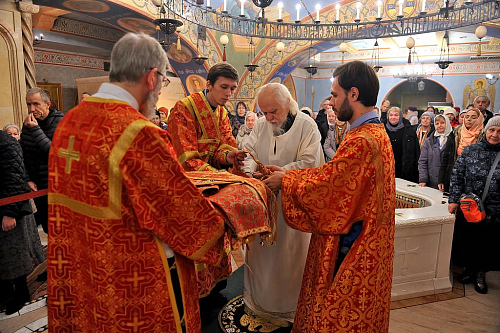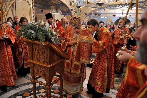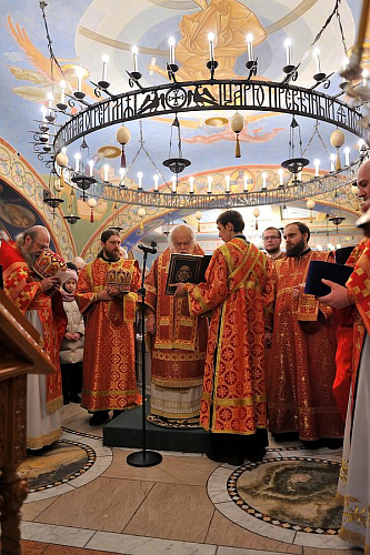 По окончании Божественной Литургии было провозглашено уставное многолетие Святейшему Патриарху Московскому и всея Руси Кириллу.